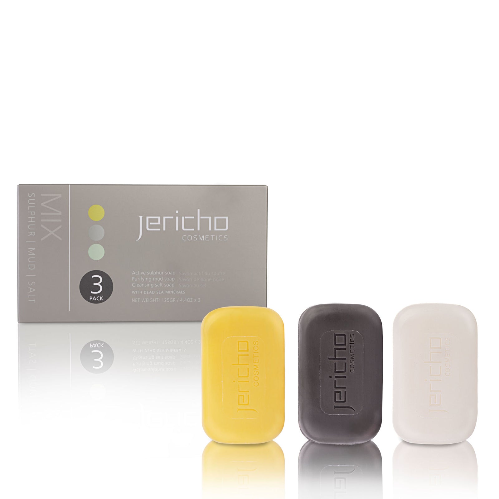 Jericho Cosmetics Natural Soap Variety Pack – 3 Bars (Sulfur, Dead Sea Mud, and Mineral-Rich)
